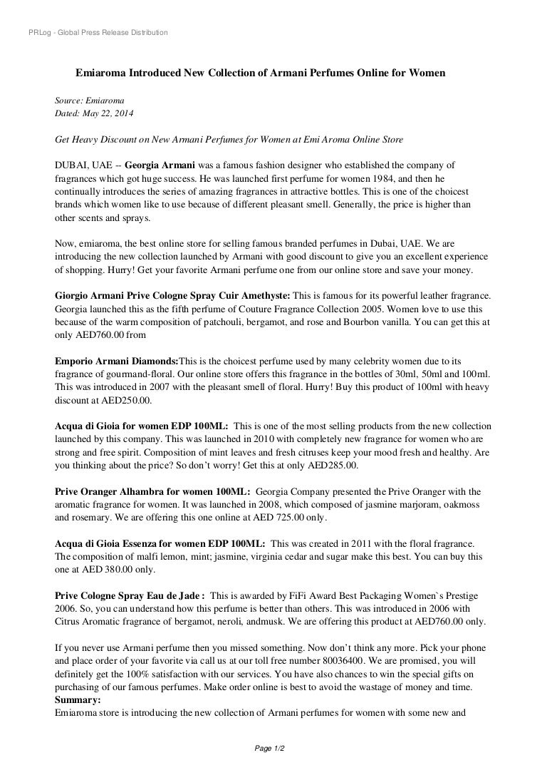 To make people look and smell as good as possible is what giorgio armani considers his real duty. The giorgio armani brand boasts a wide variety of perfumes, with unmistakable fragrances for giorgio find the fragrance you're looking for in perfumes club and buy your giorgio armani perfume online at a very special price. Giorgio armani designers perfumes,dubai stock perfumes now available,if u can't afford designers perfumes and can't afford them not to worry our dubai stocks got u,last up to 48hrs,we deliver nationwide retail & wholesale pri. Browse giorgio armani perfume at macy's. Timeless and unique, giorgio armani's fragrances are dedicated to the modern and sophisticated armani woman. | new giorgio armani my way edp spray 50ml perfume. Get the best deals on giorgio armani perfume. Fragrancenet.com offers a wide variety of armani cologne and perfume at discount prices. Timeless and unique, giorgio armani's fragrances are dedicated to the modern and sophisticated armani woman. Free delivery and returns on ebay plus items for plus members. Find unbeatable deals on giorgio armani perfume at fragrancex. Get the best deal for giorgio armani fragrances from the largest online selection at ebay.com. Find your favorite perfumes and discover new scents.